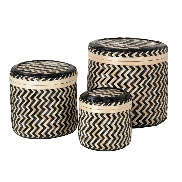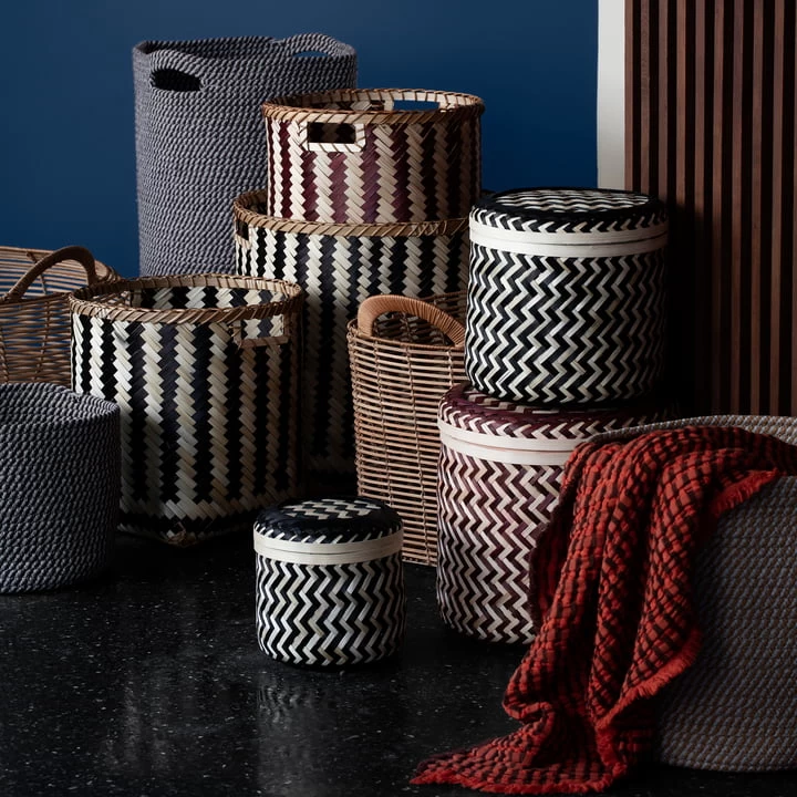 Der Kasia Aufbewahrungskorb von begeistert mit einem grafischen, kontrastreichen Zick-Zack-Muster und seiner hohen Funktionalität- Hergestellt aus Bambus ist der Korb sowohl leicht als auch langlebig und verfügt zudem über einen praktischen Deckel. So können in Kasia nicht nur oder Beauty-Produkte aufbewahrt werden, sondern auch Hygiene-Artikel und Wertgegenstände diskret verstaut werden.