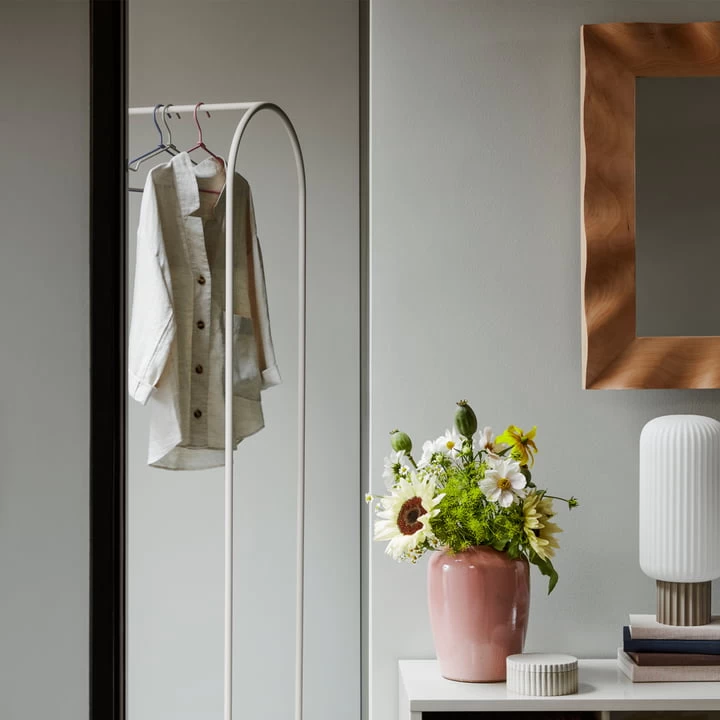 Da die Mio Kleiderbügel einer spannenden Farbpalette entspringen, können sie, neben den Kleiderschränken, auch zusätzlich verwendet werden, um Garderobenständer optisch aufzuwerten. Der eignet sich besonders gut. Das dezente, industriell designte Stück kann mit den bunten Kleiderbügeln aufgewertet werden, sodass der Garderobe ein individueller Touch verleiht wird.
