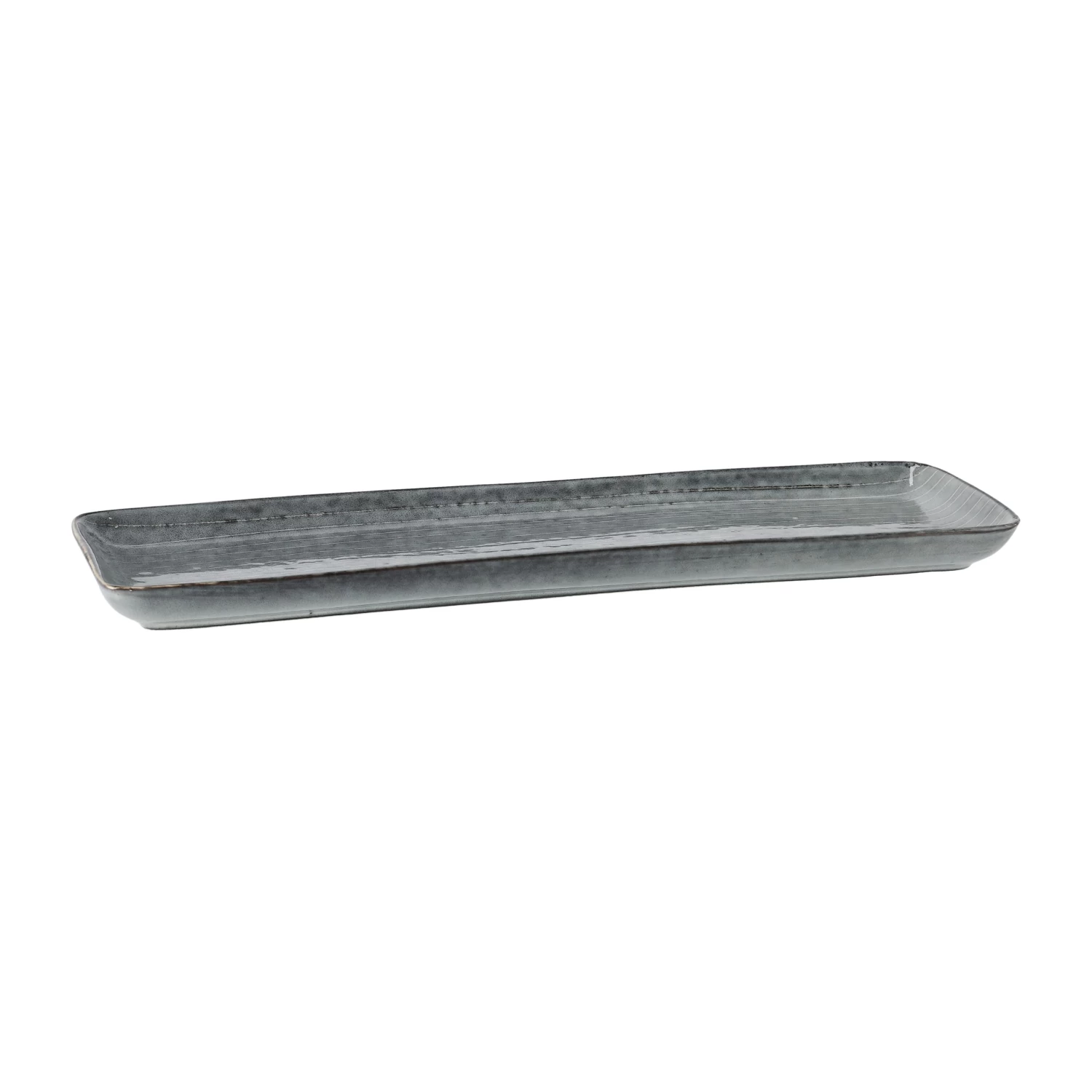 Dieser rechteckige Teller aus der Geschirrserie „Nordic Sea“ von Broste Copenhagen verzaubert mit seiner Glasur in blau-grau-grünem Handmade-Look. Wie es schon der Name vermuten lässt, ist die händisch applizierte Glasur vom Farbspektrum der Nordsee inspiriert. Jedes Stück ist ein Unikat und macht den gedeckten Tisch zu einem Anblick gediegener Handwerkskunst.