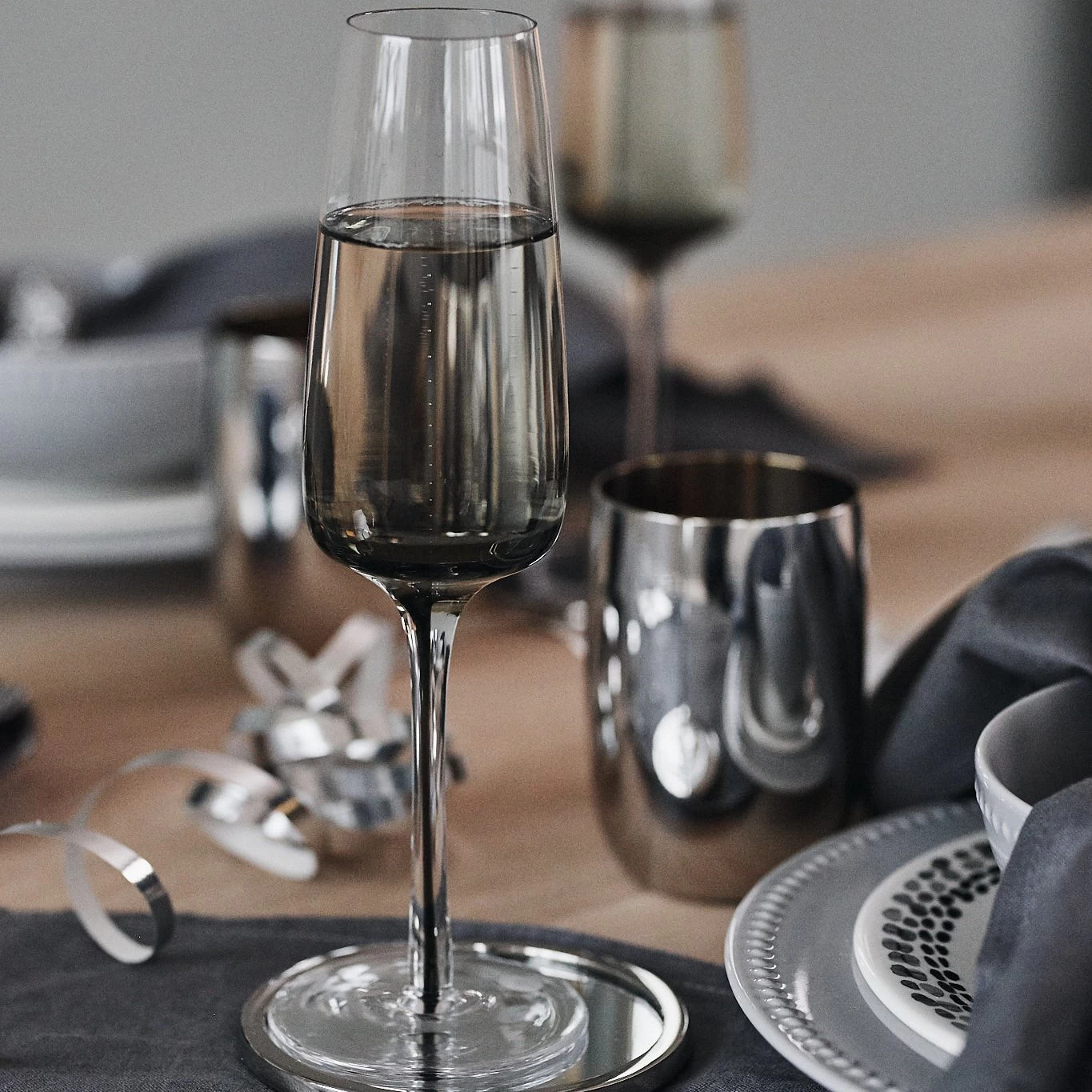 Das Smoke Champagnerglas von Broste Copenhagen wird aus mundgeblasenem, rauchfarbigem Glas gefertigt. Durch die individuelle Herstellung kann die Farbintensität der Gläser variieren, wodurch jedes Smoke Champagnerglas einzigartig ist.